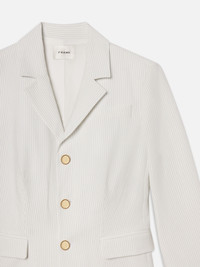 Crafted in a textured seersucker fabric, this blazer features a subtle cinch at the waist and gold buttons. It's styled best with the matching Slim Palazzo Modernist Pocket Pant. Materials & Care Dry Clean Only 50% Modal/46% Cotton/4% Elastane 24" Long From Shoulder WS25WBZ013-LCHM