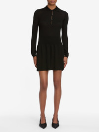 This sleek, soft dress features a modern blouson waist for figure-flattering, lightweight volume. Functional buttons at the collar can be worn closed or partly open for a more revealing look. Materials & Care Dry Clean Only 100% Merino Wool Extrafine 32.25" Long From Shoulder WF25KDR002-BLK