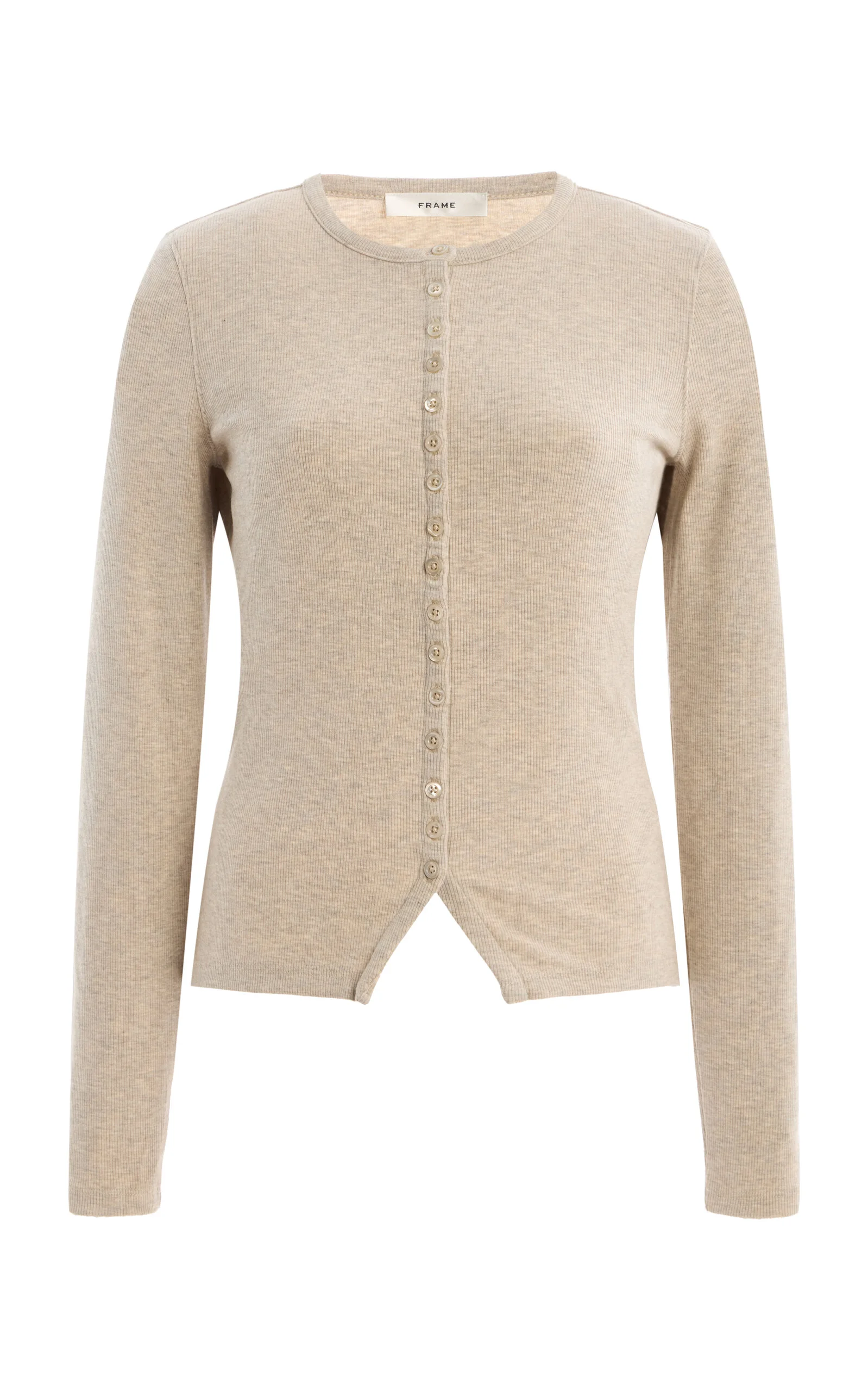 FRAME has distinguished itself in a bustling denim market by concentrating on quality materials and a superb fit that distinguishes even the simplest styles. The Rib Splay Top is crafted from soft, ribbed modal with a touch of stretch, featuring a functional button-down front for a refined yet effortless everyday layer. PRODUCT DETAILS - Resort '26 - Button fastening - Composition: 93% modal, 7% spandex - Designer color: Oatmeal - Machine Wash - Imported