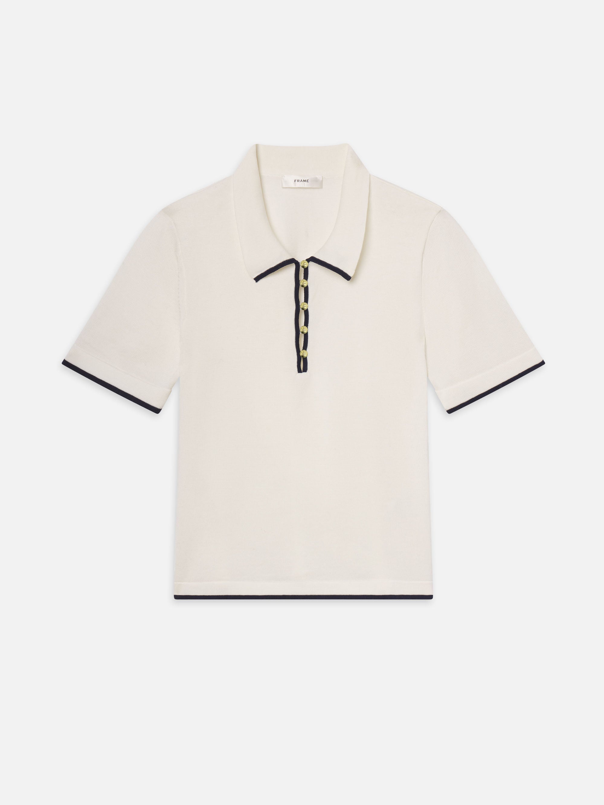 A touch preppy and wholly elegant, The Sport Polo elevates a classic with contrast trim at the inner collar, button placket and short sleeve hem. Gold dome buttons and ribbed trim complete the cotton knit. Consider this your elevated T-shirt alternative that's just as versatile. Materials & Care Dry Clean Only 100% Cotton 20.75" Long From Shoulder WS25KSW008-CREM