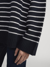 The Cashmere Turtleneck is crafted from 100% cashmere with a super soft hand feel, featuring a slightly oversized fit and fine cream stripes for an effortlessly luxurious finish. DETAILS - Dry Clean Only - 100% Cashmere - 25.875" Long From Shoulder - WP26KSW071-NAMU
