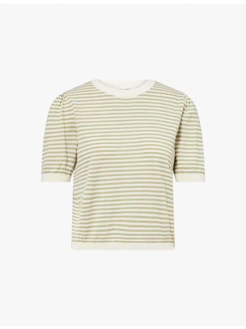 PRODUCT DETAILS - FRAME cotton-blend jumper - 50% cotton, 50% modal - Regular fit, round neck, short puff sleeves, all-over stripe, contrast ribbed trims - Dry clean - True to size - Model is 5ft 10in/1.78m and wears a size small - Lightweight, stretchy Ref: R04596002