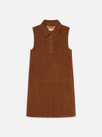 A shift and the city. Prepped for al-fresco spritzes and downtown strolls, this chic suede dress flaunts a point collar and leather-covered snaps. The relaxed, warm brown silhouette is both soft and sophisticated—just the thing for your city escape or countryside retreat. Materials & Care Clean Professionally By A Leather And Suede Specialist 100% Lamb Suede 33.5" Long From Shoulder/48.5" Leg Opening WE25LDR001-SEPI