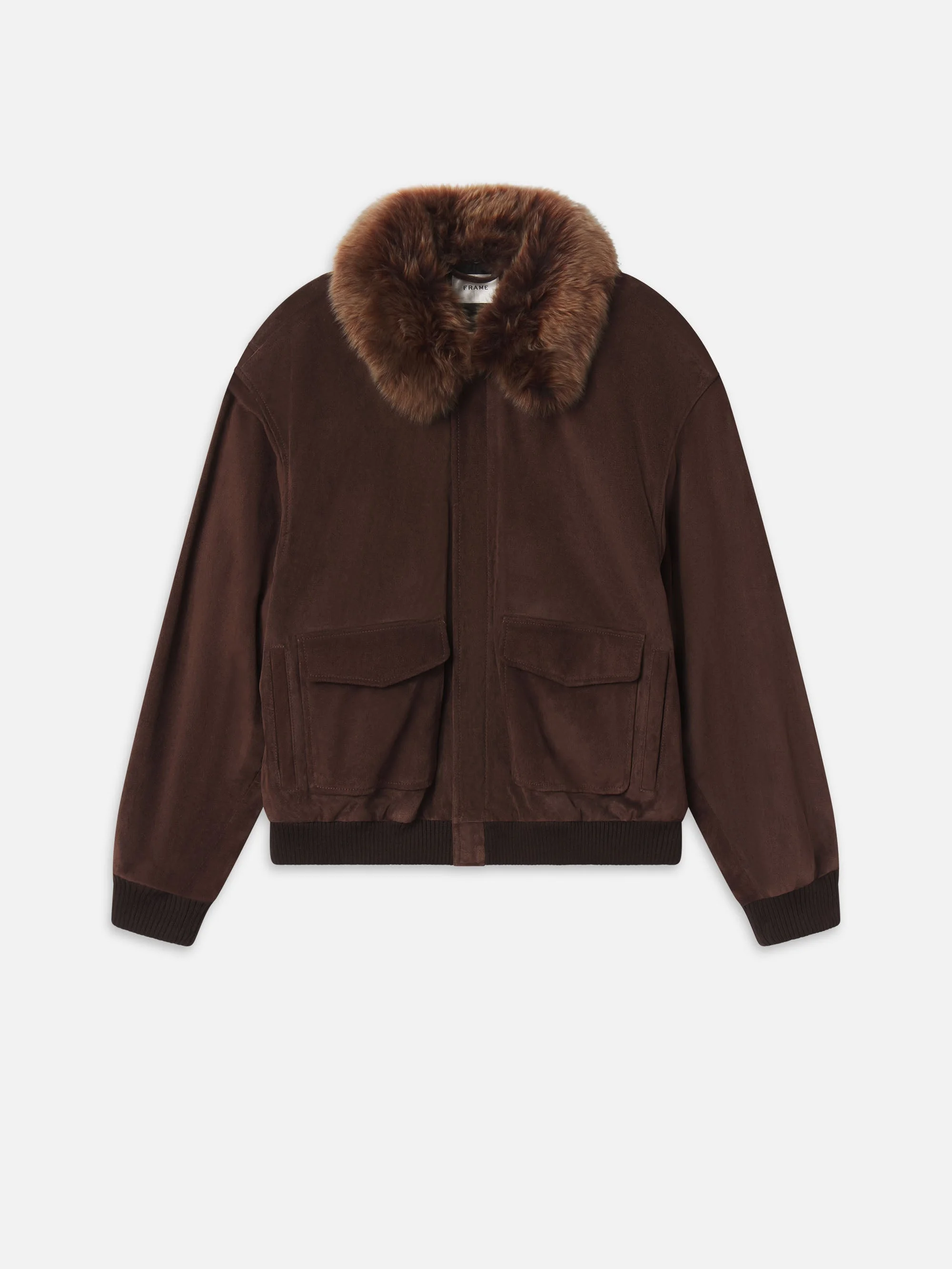 Crafted from supple 100% calf suede, The Suede Oversized Jacket features a removable shearling collar, front pockets, and ribbed trims. DETAILS - Clean Professionally By A Leather And Suede Specialist - 100% Calf Leather - 28" Long From Shoulder - WP26LJA013-AMER