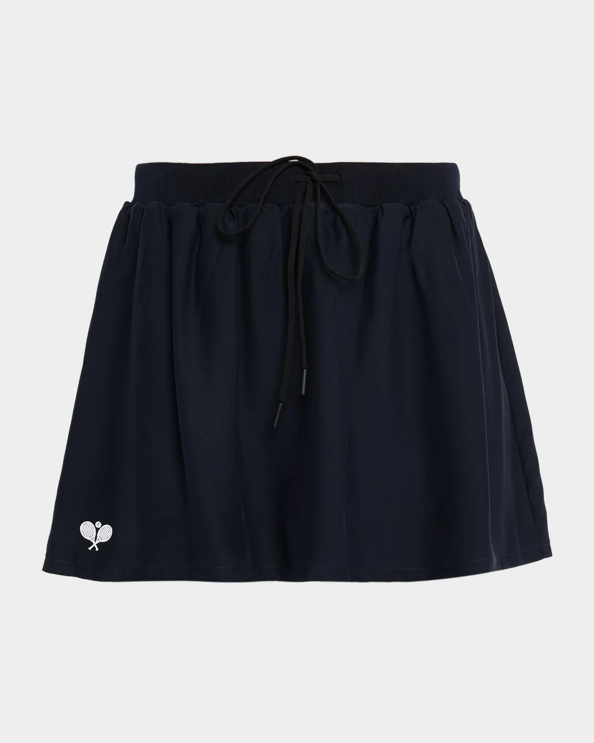 - Perfect for on or off the court, FRAME's "Tennis Skirt" is sure to bring a sporty flair to any look. - High rise - Drawstring waistband - A-line silhouette - Hem falls above the knee - Pull-on style - Silk - Dry clean - Imported