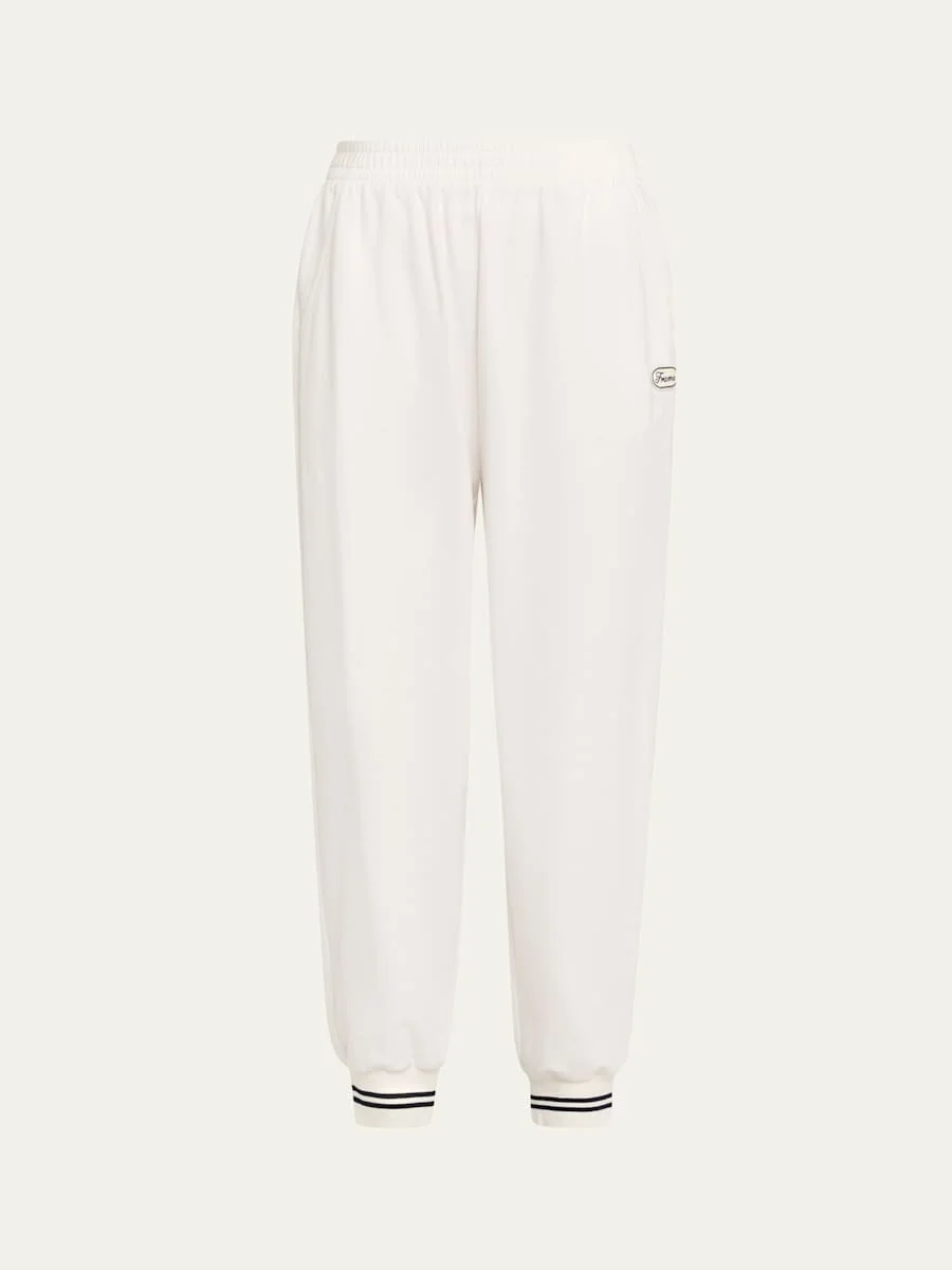 Perfect for on or off the court, FRAME's knit sweatpants with tennis embroidery throughout add the sporty touch you need Approx. 27.3" inseam High rise Elastic waistband Side pockets; back patch pocket Straight legs Ankle length Pull-on style Cotton/polyester Machine wash cold, tumble dry Imported Online Inquiries: BGS21_T6YLS| Store Inquiries: #5069382