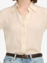 A slim-fitting dobby silk shirt with vented sides and adjustable cuffs. Tailored with a clean, easy drape that pairs effortlessly with denim or trousers. Materials & Care Dry Clean Only 100% Silk 25" Long From Shoulder WF25WSH019-CREA