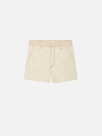 Defined by its stitched waistband and clean lines, this neutral short is cut with a structured rise, angled front pockets, and a crisp leg. The contrast trapunto stitching adds a tailored finish to the warm-weather staple. Materials & Care High Rise Fit Machine Wash Cold 100% Cotton 12.25" Front Rise/3" Inseam/24.75" Leg Opening 019DST728-VLBN