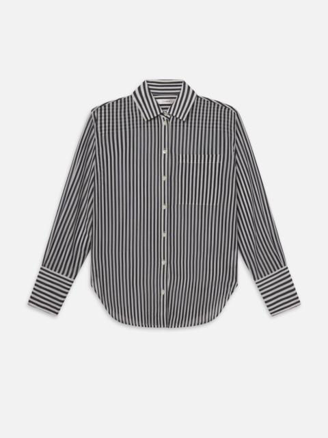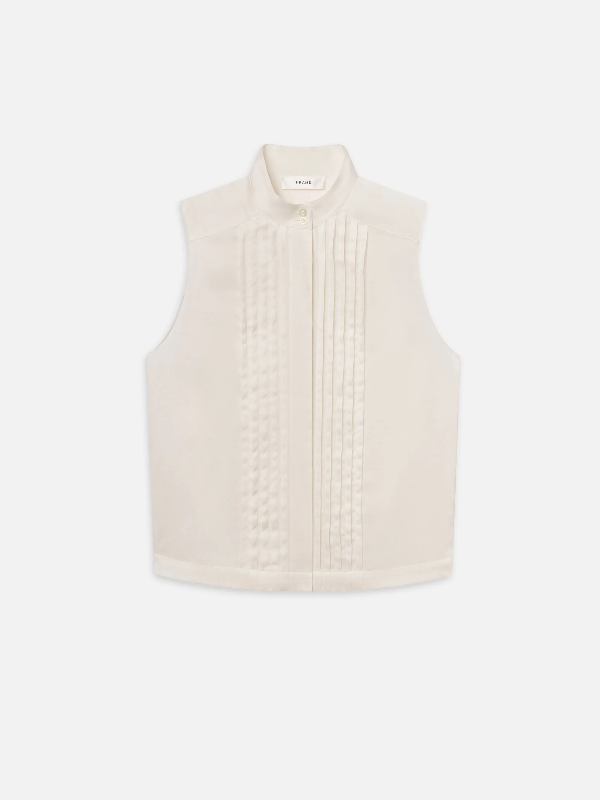 It's a formal affair. Take tuxedo polish into daily dress with a silk-cotton voile blouse. The lustrous piece emulates traditional formalwear with a stand collar and pleated panels on either side of a concealed button placket. Tres chic. Materials & Care Dry Clean Only 58% Silk/42% Cotton 21" Long From Shoulder WS25WSH010-ABST