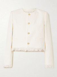 Cropped fringed cotton-blend tweed jacket Ivory