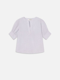 Pretty and polished with a clean, feminine silhouette, this popover features a V-neckline and short-sleeves finished with micro pleated, two buttoned cuffs for a bit of volume. The perfect length to tuck into jeans or wear loose over a miniskirt. Materials & Care Machine Wash Cold 89% Cotton/11% Linen 24" Long From Shoulder WE25WBL020-STBM