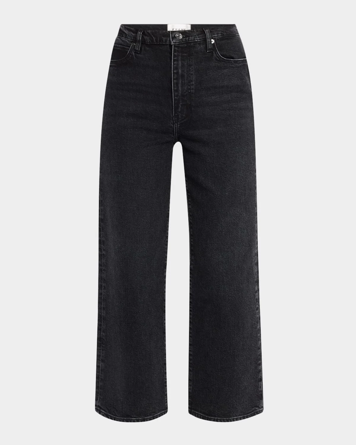 - FRAME "The Wide" jeans in black denim - Approx. 11.8" rise; 27.5" inseam - High rise - Five-pocket style - Slim fit - Cropped length - Button/zip fly; belt loops - Cotton/elastane - Machine wash cold - Imported