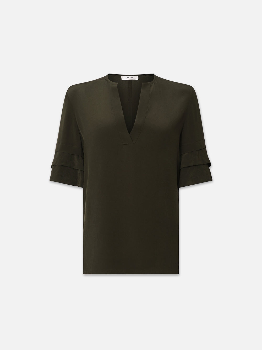 Please note: This is a sale style. A $12 restocking fee applies for any return that includes Sale styles, deducted from the refund total. A new twist on the classic V-neck, this recycled charmeuse blouse has layered ruffled short sleeves. Keep it more casual with denim or dress it up a bit with leather. Materials & Care Machine Wash Cold 100% Recycled Polyester 25" Long From Shoulder WS24WBL035-WLGR