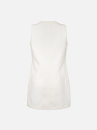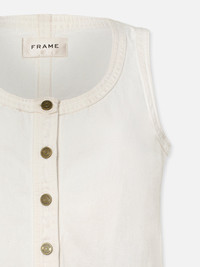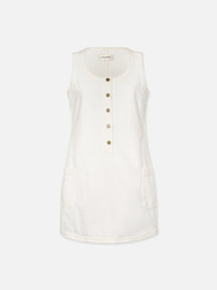 This scoop-neck minidress features a relaxed A-line fit, trapunto side pockets and a brass button placket. Crafted from rigid denim in a classic Off White wash. Materials & Care Dry Clean Only 100% Cotton 32.5" Long From Shoulder WE24DDRB02-AUCL