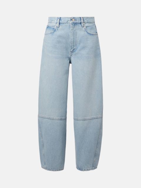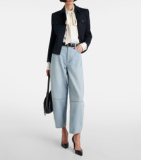 Frame creates iconic denim designs using fair manufacturing practices and sustainably sourced materials. The Twisted wide-leg jeans feature sculpted outseams, knee seaming for a utility-inspired finish and ankle-length inseams. Product Details - Material: 100% cotton - Care instructions: machine wash at 30 degrees - Made in Turkey - Designer color name: Never - Item color: blue - Closure: zipper fly, button fastening - Pockets: side slit pockets, back pockets - Item number: P01055547 Size & Fit - True to size - Non-stretchy fabric - Wide-leg - High-rise - The model seen in the picture is 178cm-5'10" and wearing a size 26