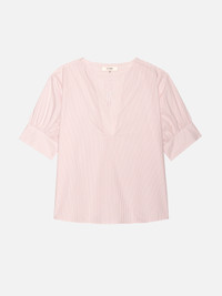 Pretty and polished with a clean, feminine silhouette, this popover features a v-neckline and short-sleeves finished with micro pleated, two buttoned cuffs for a bit of volume. The perfect length to tuck into jeans or wear loose over a miniskirt. Materials & Care Machine Wash Cold 100% Organic Cotton WS25WBL053-AZMT