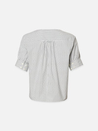 Pretty and polished with a clean, feminine silhouette, this popover features a v-neckline and short-sleeves finished with micro pleated, two buttoned cuffs for a bit of volume. The perfect length to tuck into jeans or wear loose over a miniskirt. Materials & Care Machine Wash Cold 100% Organic Cotton 24" Long From Shoulder LWSH2829-NAMU