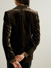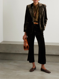FRAME's founders understand the value of styles you can wear every season, especially when they're as well made as this blazer. It's cut slim from plush velvet in a rich brown and has lightly padded shoulders and peak lapels. Style yours with the coordinating pants and ballet flats.