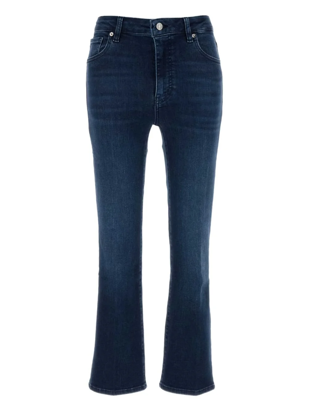 whiskering-effect jeans Highlights - Dark blue - Stretch denim - Button fly - Classic five-pocket design - Belt loops Imported Composition Cotton 70%, Polyester 17%, Lyocell 11%, Elastane 2% SIZE & FIT FittingInformation Designed with a bootcut leg, these jeans allow for a close fit at the waist and with an unrestricted, comfortable fit and additional room at the calves Cropped in length Constructed from stretch denim, this piece offers a stretch fit with durability Washing instructions Read Manufacturer Guidelines