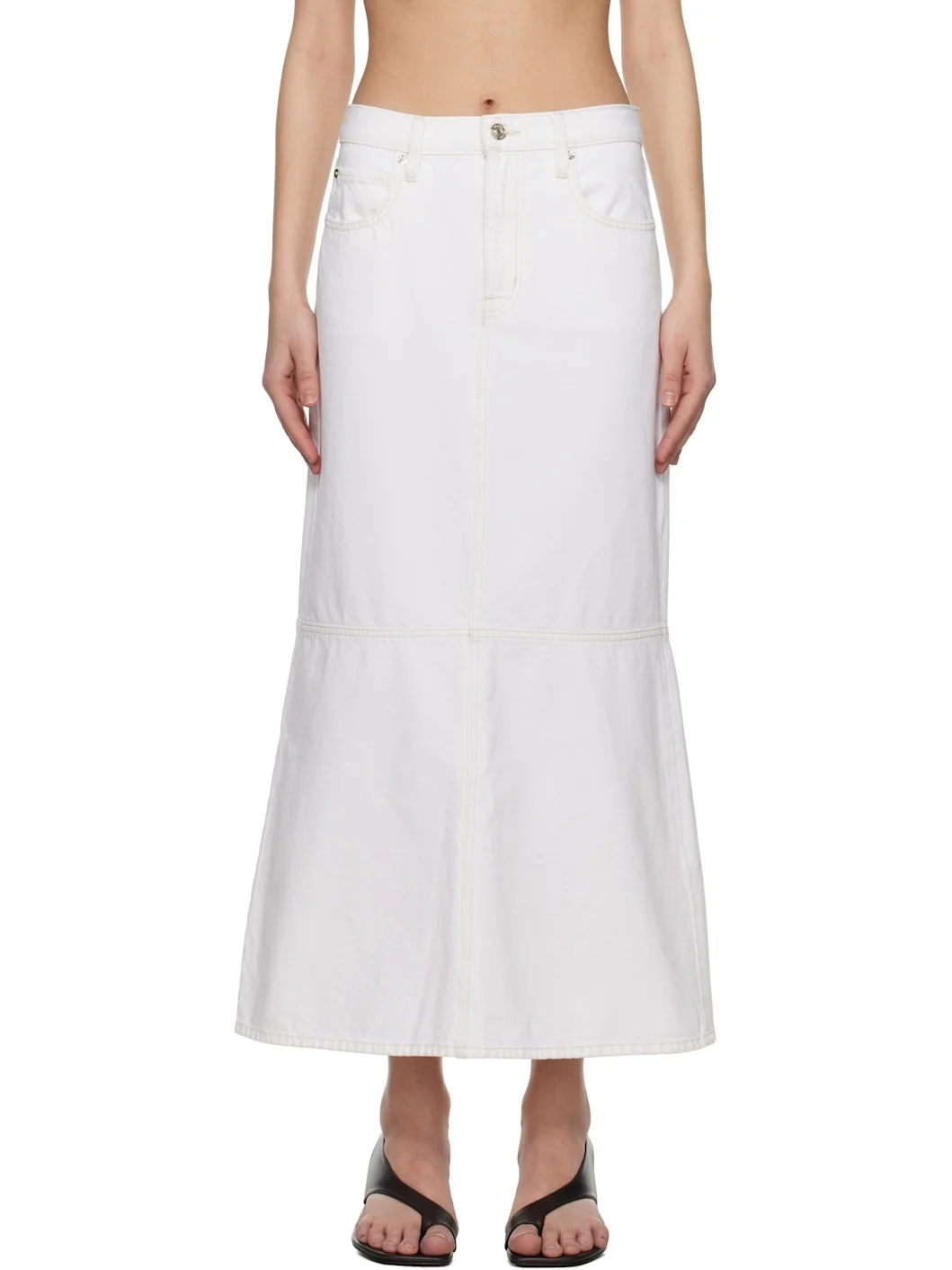 Slim-fit non-stretch denim midi skirt. · High-rise · Belt loops · Five -pocket stying · Zip fly · Flared hem · Slit at back hem · Logo-engraved gold-tone hardware · Contrast stitching in beige Supplier color: Au natural clean 100% cotton. Made in Turkey 251455F092000
