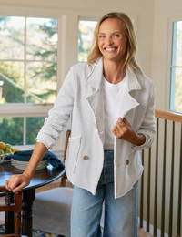 Our Belfast Sweatshirt Peacoat was love at first sight! This mini, everyday version has all the best parts of the original—luxurious horn buttons, scrunchable sleeves, and a statement collar — with the cutest cropped fit! - Notched lapels - Double-breasted horn buttons - Roomy patch pockets - Long easy-to-scrunch sleeves - Mae is 5'9" with a 32" bust wearing a size S - This style was made using a small batch garment-dye process, giving each piece a unique look that will evolve and fade over time - Style Code: LABCROP-GRYM FABRIC + CARE - A soft, lightly combed three-yarn knit that looks luxurious—yet feels just like your favorite sweatshirt. - 100% Cotton. Cotton comes from the U.S. and Brazil, is spun in the U.S. and Korea, finished in the U.S. - We recommend washing separately in cold water before the first wear to prevent any color transfer. After that, machine wash cold with like colors and tumble dry low. - Learn more in our Fabric Guide.