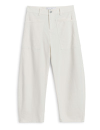 Bray is the ultimate everyday barrel pant, dialed up in smooth, elevated Italian Peached Twill. Expect a flattering barrel-style leg and cropped fit, with our signature joey pocket that wraps around your leg for a perfectly polished finish. This style is on pre-order and is estimated to arrive early February. - Finished hem - Zip fly with button closure - Signature joey pockets that wrap around your leg - Contour waistband that sits just below your natural waistline - Barrel leg fit - Milan is 5'9" wearing a size 4 - Inseam: 26.5”, front rise: 11.5" including waistband, leg opening: 16.5" (size 4) - Style Code: BRAY-CHLK FABRIC + CARE - This tactile, year-round weight is not too light, not too heavy–just right. Made exclusively for F&E, this fabric feels like a smooth, lightly textured peach. - 97% Cotton, 3% Elastane. The raw cotton comes from the U.S. and is spun into yarn in Puglia, Italy. The unprocessed, unfinished fabric is sent to our Italian partner’s mill for dyeing, finishing, and quality control. - Turn this garment inside out, machine wash cold, and tumble dry low or hang dry. - Learn more in our Fabric Guide.