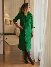 Rory is everything we ever wanted in a full-length, button-up dress. A long, lean, and lovely silhouette elongates your torso and feels extra-airy, while Rory's statement chest pocket and easy-to-roll sleeves exude breezy California chic. - Hand-distressed shirttail hem - Front button closure - Long sleeves with button cuffs - Signature bust flattering button placement with chest pocket - Paloma is 5'9" with a 34" bust wearing a size S - 47" length from shoulder to hem (size S) - Style Code: RORY-KLGC FABRIC + CARE - Italian Corduroy, 100% Cotton - Our Italian Corduroy is garment-dyed by hand, which makes it incredibly soft to the touch and extra comfortable to wear. Better yet, we’ve chosen a classic, wide-whale corduroy style for added personality and a more luxurious look—you're welcome! - Turn this garment inside out, machine wash on cold, and tumble dry on low - Woven in Italy, sewn in Mexico, hand-dyed in Sunny California