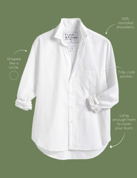 Eileen’s relaxed fit looks phenomenal on every figure. Better yet, she exudes casual California effortlessness. But, the best part? Eileen is generously cut, with our signature bust-flattering button placement. Try tucking, tying, or tossing this easy-to-pull-off best seller over everything in your closet. - Hand-distressed raw shirttail hem long enough to cover your bum - Shaped like a circle with soft rounded shoulders and no back pleat - Chest pocket - Signature bust flattering button placement and long sleeves with button cuffs - Milan is 5'9" with a 33" bust wearing a size S - This style was made using a small batch garment-dye process, giving each piece a unique look that will evolve and fade over time - Style Code: EILEEN-WCD FABRIC + CARE - This “legendary” denim is hand-finished by artisans in California, featuring one-of-a-kind details—and it only grows softer with every wash. - 100% Cotton. Our cotton is sourced, spun, dyed, and woven in Egypt, then cut, sewn, and finished right here in California. - We recommend washing separately in cold water before the first wear to prevent any color transfer. After that, machine wash cold with like colors and tumble dry low. - Learn more in our Fabric Guide.