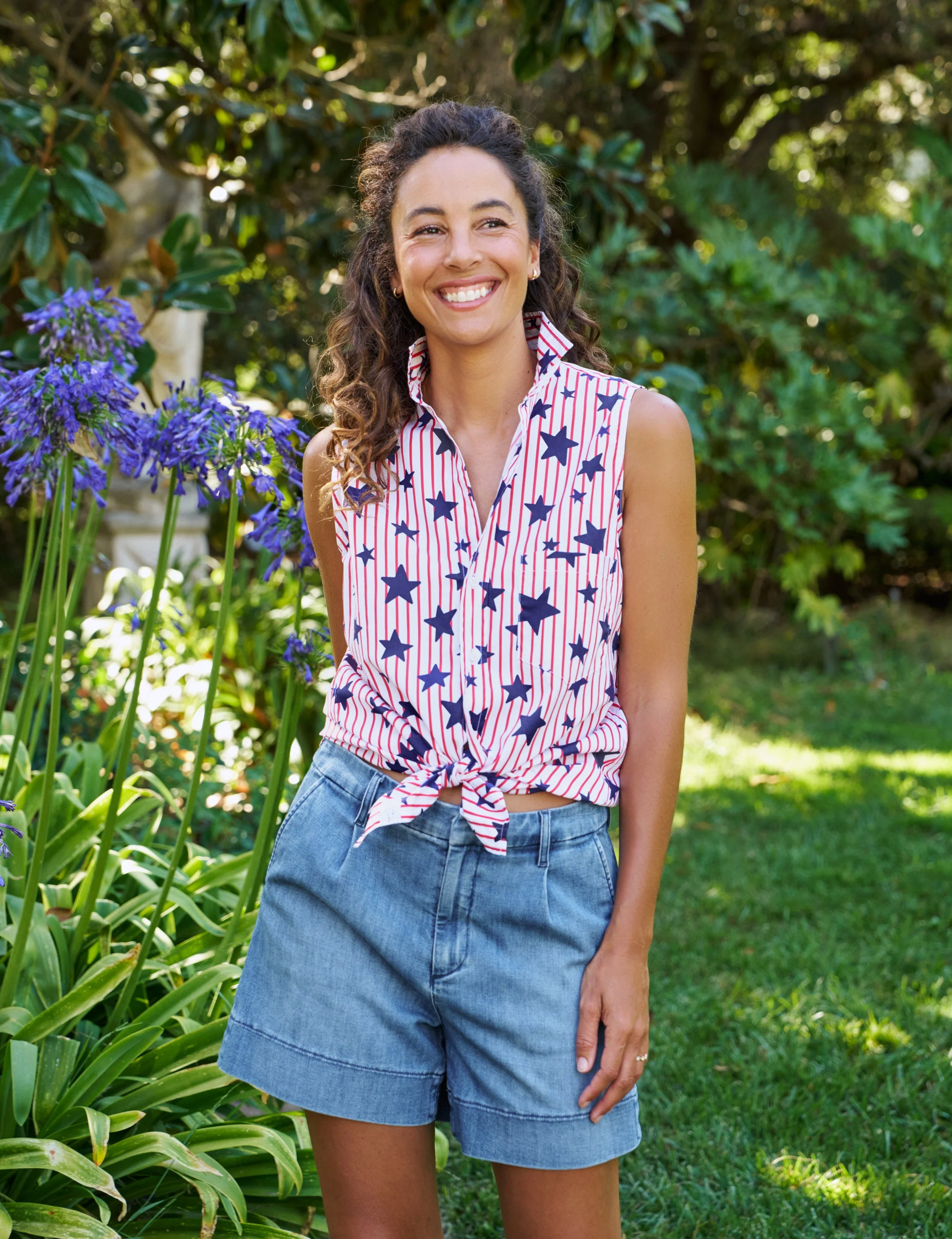 Finley will be your layering hero! This sleeveless style solves the “what do I wear under my sweater?” issue, giving you all the look of a button-up without the bulk! Pop Finley under your Monterey or any favorite Triple Fleece pieces to create a beautifully layered, forever classic look that covers your bum. - Curved shirttail hem long enough to cover your bum - Silhouette is shaped like a oval for a feminine drape - Chest pocket and signature bust flattering button placement - Sleeveless silhouette perfect for layering underneath sweaters without the extra bulk - Paloma is 5'9" with a 34" bust wearing a size S - Style Code: FINLEY-RSNS FABRIC + CARE - Superluxe is cool-to-the-touch, with a luminous appearance and a full-bodied hand for a more structured fabric. - 100% Cotton. Our cotton is sourced from the U.S., spun in Egypt, woven into fabric in Italy, then cut, sewn, dyed, and finished in Mexico. - Turn this garment inside out, machine wash cold, and tumble dry low. Iron or press to maintain crisp fabric. - Learn more in our Fabric Guide.