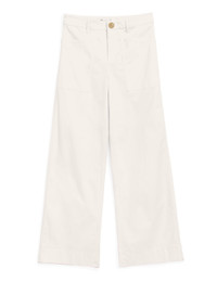 Limerick is the full length, wide-leg pant you’ve been asking for, dialed up with a flattering ‘joey’ pocket that wraps smoothly around your leg. A luxurious horn button closure adds the perfect finishing touch to our sophisticated take on an everyday utility pant. - Clean block hem - Front joey pockets and back welt pockets - Contour trouser waistband with zip fly and horn button closure - Mid-rise, wide-leg fit - Ray is 5'10" wearing a size 4 - Inseam: 31”, front rise: 10.5", leg opening: 21.25" - Style Code: LIMERICK-CHLK FABRIC + CARE - This tactile, year-round weight is not too light, not too heavy–just right. Made exclusively for F&E, this fabric feels like a smooth, lightly textured peach. - 97% Cotton, 3% Elastane. The raw cotton comes from the U.S. and is spun into yarn in Puglia, Italy. The unprocessed, unfinished fabric is sent to our Italian partner’s mill for dyeing, finishing, and quality control. - Turn this garment inside out, machine wash cold, and tumble dry low or hang dry. - Learn more in our Fabric Guide.