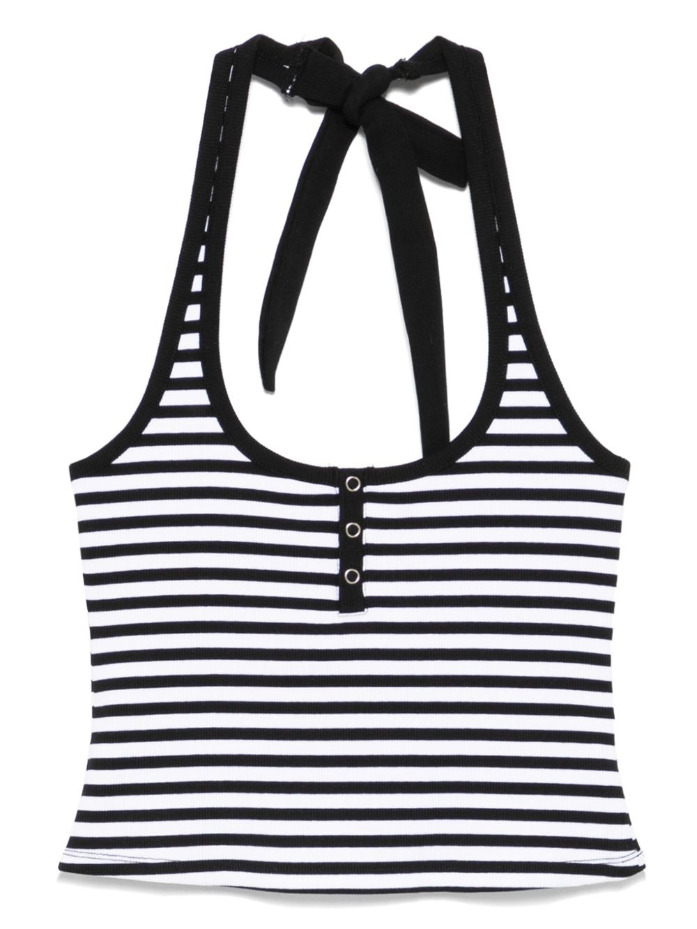 striped top Highlights - Black - Halterneck tie fastening - Press-stud placket - Scoop neck - Cropped Imported Composition Cotton 92%, Spandex/Elastane 8% SIZE & FIT Model measurements Height 5 ft 11 in(1.8 m) Bust/Chest 31.49 in(80 cm) Hips 35.82 in(91 cm) Waist 24.8 in(63 cm)