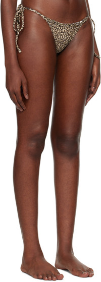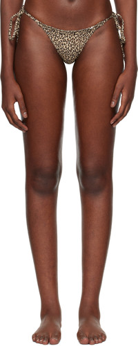 Stretch nylon jersey bikini bottom. Leopard pattern printed throughout. · Ruffled trim at elasticized waistband · Self-tie strap at sides · Fully lined Supplier color: Baby leopard 86% nylon, 14% spandex. Made in China 242090F105050