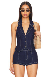 - 50% cotton 35% polyester15% spandex - Made in China - Hand wash cold - Front button closure - Rigid denim - Item not sold as set - Revolve Style No. FRBI-WS58 - Manufacturer Style No. 33226DM