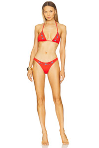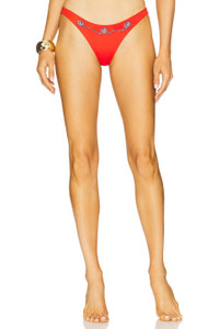 - 80% nylon 20% spandex - Made in Colombia - Hand wash cold - Pull-on styling with elastic waistband - Floral beaded detailing - Low-rise design with cheeky bikini back - Item not sold as set - Midweight swim fabric - Revolve Style No. FRBI-WX1297 - Manufacturer Style No. 11461NS