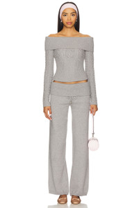 - 30% acrylic 29% polyester 21% modal 20% polyamide - Hand wash or Dry clean - Pull-on styling - Ribbing design at sholder fold and waist - Revolve Style No. FRBI-WK78 - Manufacturer Style No. 36126CB