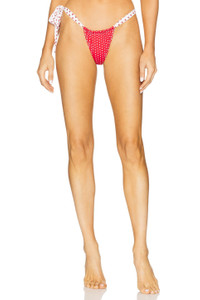 - 80% nylon 20% spandex - Made in Colombia - Hand wash cold - Side tie closures - Stretch jersey fabric with reversible design - Low rise design with Brazilian back - Item not sold as set - Revolve Style No. FRBI-WX1291 - Manufacturer Style No. 11459NS