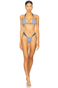 - 80% nylon 20% spandex - Hand wash - Unpadded cups - Halterneck and back tie closure - Lightweight swimwear fabric - Item not sold as a set - Revolve Style No. FRBI-WX1385 - Manufacturer Style No. 10465NS