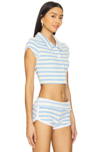 - 79% cotton 15% polyester 6% spandex - Made in China - Machine wash - Front button closure - Cropped fit design - Terrycloth fabric - Item not sold as a set - Revolve Style No. FRBI-WS72 - Manufacturer Style No. 33254TC