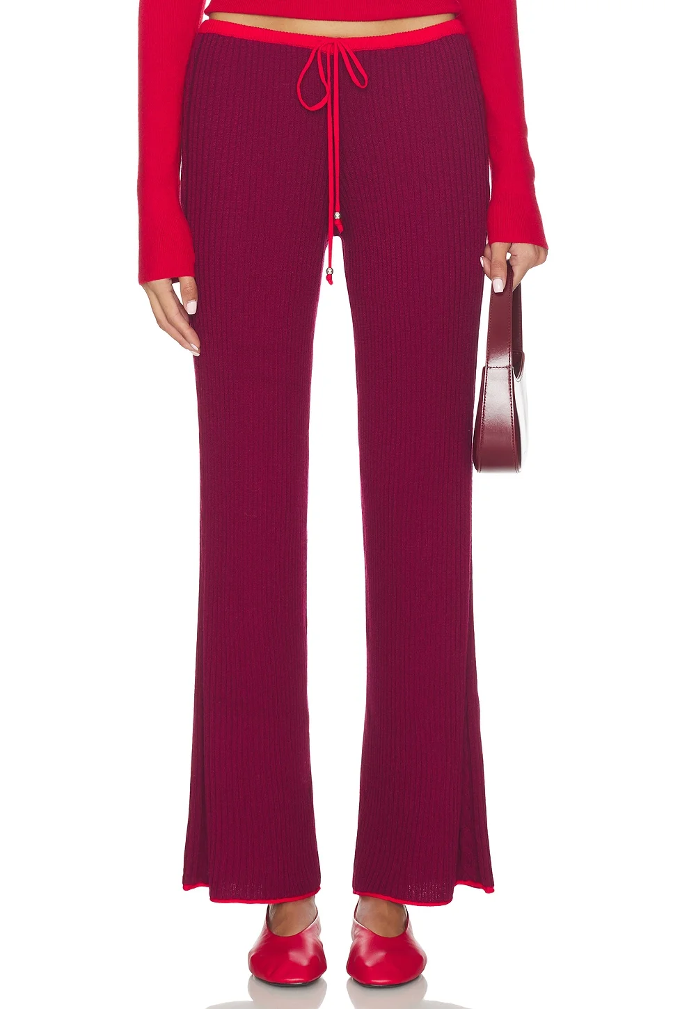 - 40% viscose 30% nylon 27% polyester 3% cashmere - Made in China - Dry clean only - Pull-on styling - Drawstring fastener - Ribbed knit fabric - Elasticized waistband.9.5" at the leg opening - Revolve Style No. FRBI-WP64 - Manufacturer Style No. 40145KN