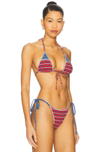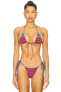 - Swimwear textile - Imported - Hand wash recommended - Unpadded cups - Halter and back self-tie closure - Midweight jersey swimwear fabric - Item not sold as a set - Revolve Style No. FRBI-WX1375 - Manufacturer Style No. 10500CS