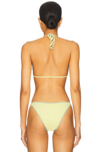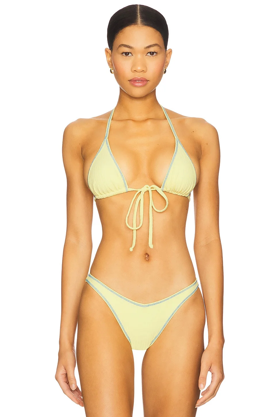 - 80% nylon 20% spandex - Hand wash - Unpadded cups - Halterneck and front tie closure - Lightweight ribbed swimwear fabric - Item not sold as a set - Revolve Style No. FRBI-WX1362 - Manufacturer Style No. 10500RB