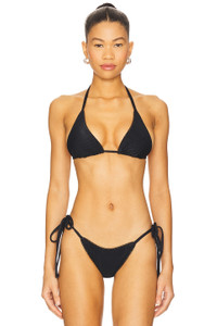 - Swimwear textile - Imported - Hand wash recommended - Unpadded cups - Halterneck and back tie closure - Scalloped trim detailing - Lightweight ribbed swimwear fabric - Item not sold as a set - Revolve Style No. FRBI-WX1377 - Manufacturer Style No. 10500RB