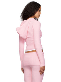 Knit acrylic-blend hoodie. · Rib-knit hood, hem, and sleeves · Drawstring at hood · Two-way zip closure · Logo embroidered at hem Supplier color: Cozy pink 30% acrylic, 29% polyester, 21% modal, 20% polyamide. Made in China 242090F097006