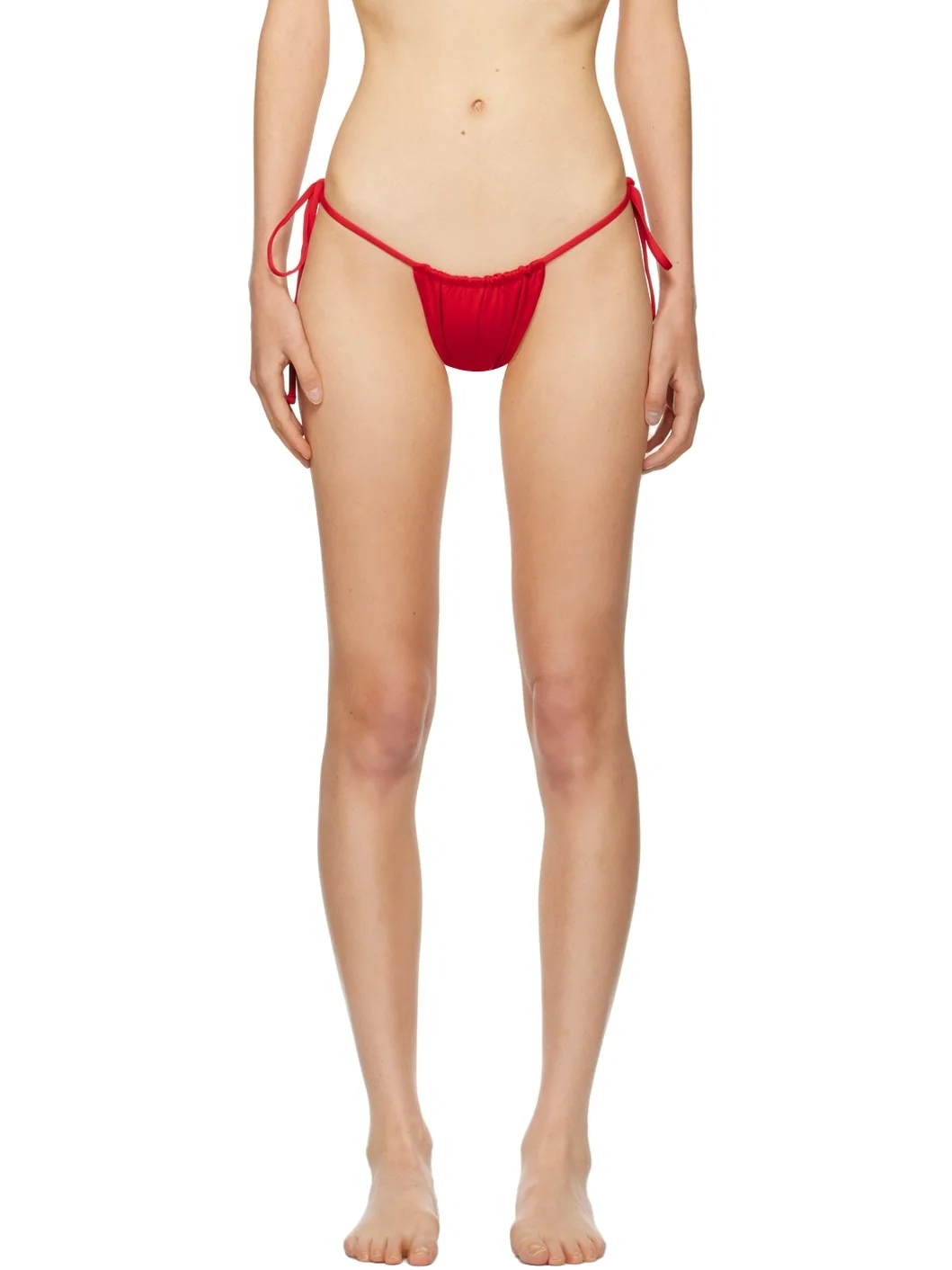 SoftSwim stretch nylon jersey bikini bottom. · Ruching at front and back · Self-tie straps at sides · Fully lined Supplier color: True red 80% nylon. 20% spandex. Made in Colombia 241090F105011