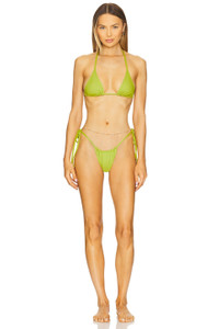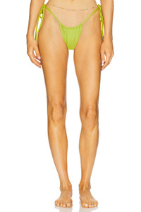 - 80% nylon 20% spandex - Made in USA - Hand wash cold - Side tie closures - Low-rise design with cheeky bikini back - Item not sold as set - Midweight swim fabric - Revolve Style No. FRBI-WX1328 - Manufacturer Style No. 11190NS