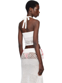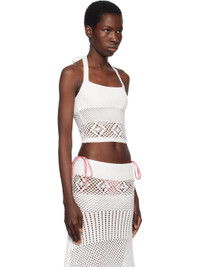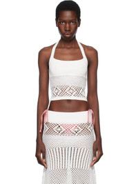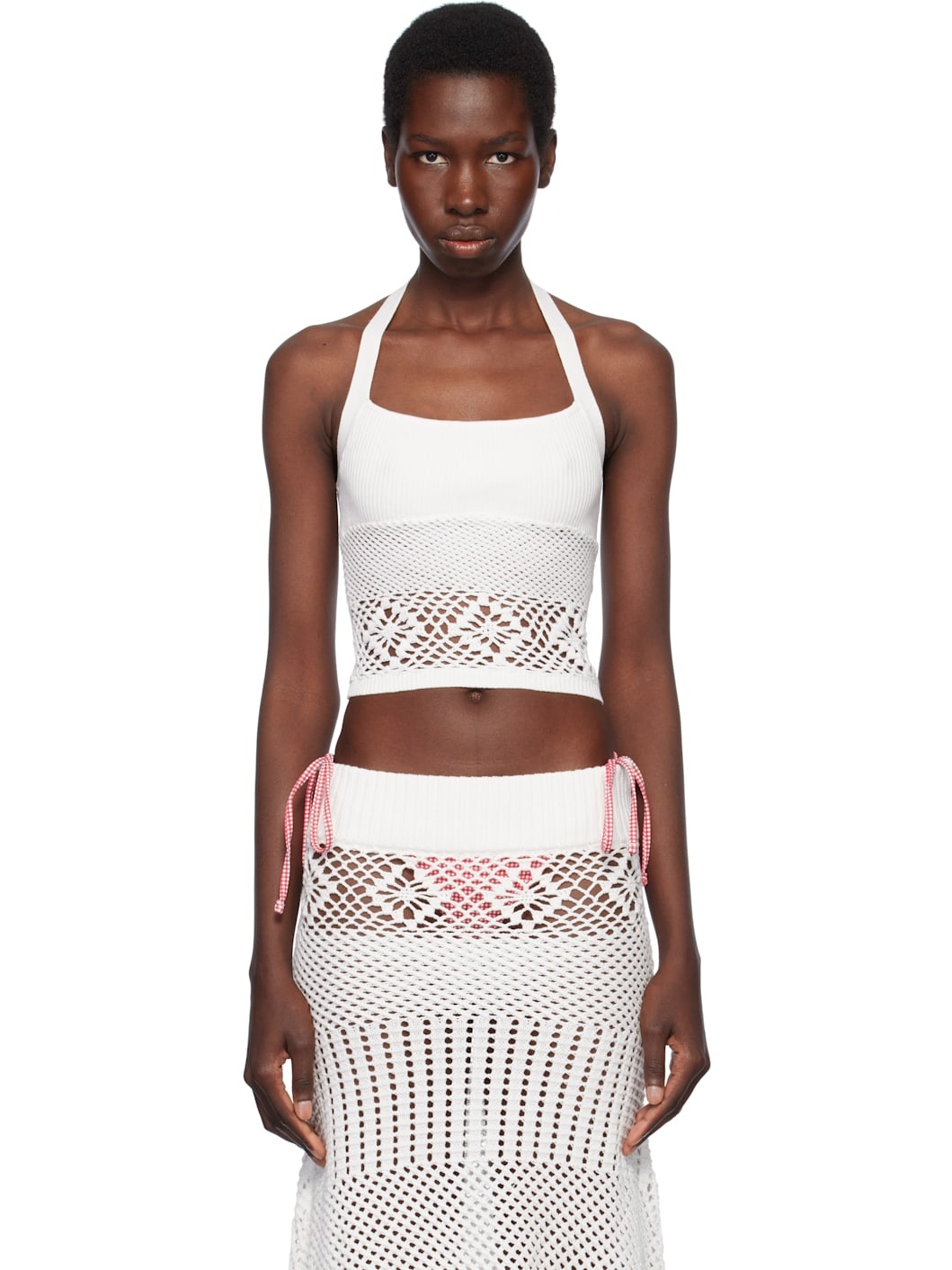 Crocheted and rib-knit cotton top. · Square neck · Self-tie halter strap Supplier color: White 100% cotton. Made in China 251090F111002