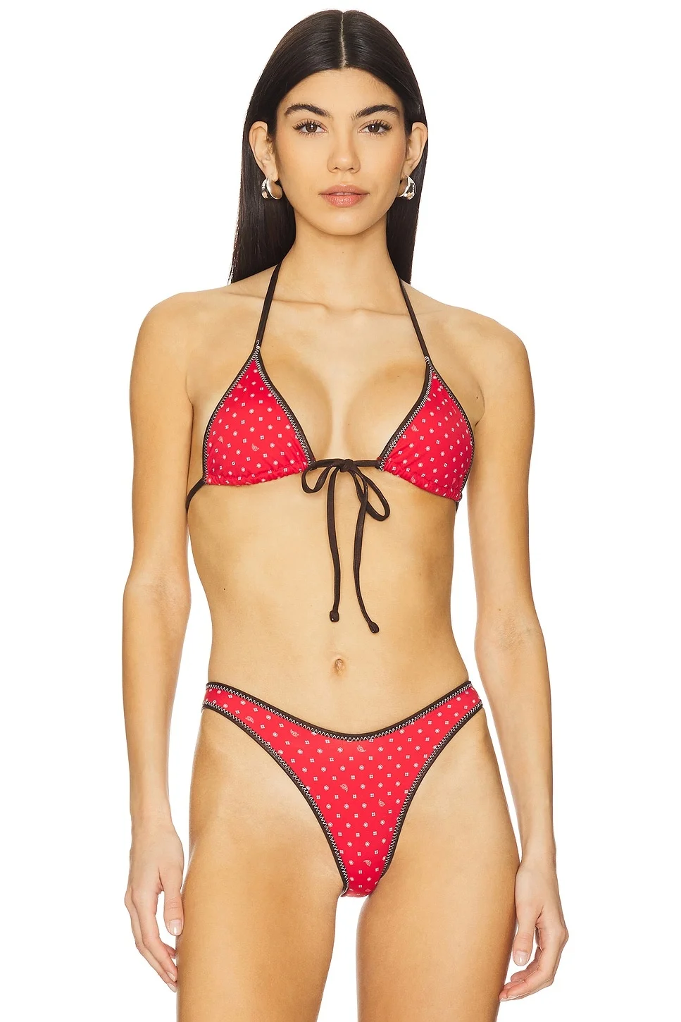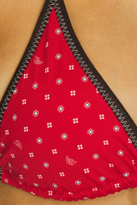 - Frankies Bikinis x Bella Hadid 80% nylon 20% spandex - Made in Colombia - Hand wash - Unpadded cups - Halterneck and back tie closure - Lightweight swimwear fabric - Item not sold as a set - Revolve Style No. FRBI-WX1312 - Manufacturer Style No. 10500NS