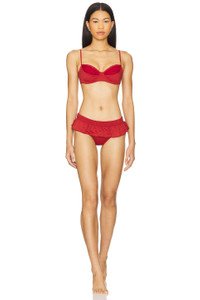 - Frankies Bikinis x Bella Hadid 80% nylon 20% spandex - Hand wash cold - Shirred waistband - Ruffled trim - Midweight swimwear fabric - Item not sold as a set - Revolve Style No. FRBI-WX1336 - Manufacturer Style No. 11400NS