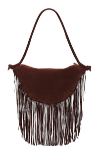 - Suede exterior with textile lining - Top zipper closure - One main compartment - Two interior slip pocket - Fringe detail - Measures approx 14" W x 8" H x 1.5" D Shoulder strap with a 10" drop - Revolve Style No. FDAX-WY4 - Manufacturer Style No. ERIKA