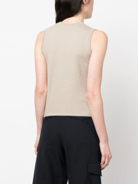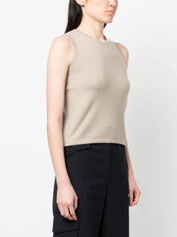 cashmere knitted tank top dark chalk stretch-design cashmere blend ribbed trim crew neck sleeveless straight hem Imported Composition Cashmere 95%, Elastane 5% SIZE & FIT Model measurements Height 5 ft 10 in(1.78 m) Bust/Chest 31.49 in(80 cm) Hips 36.22 in(92 cm) Waist 25.59 in(65 cm) FittingInformation This piece fits true to size. We recommend you get your regular size Cut for a slim fit Made with a mid-weight fabric